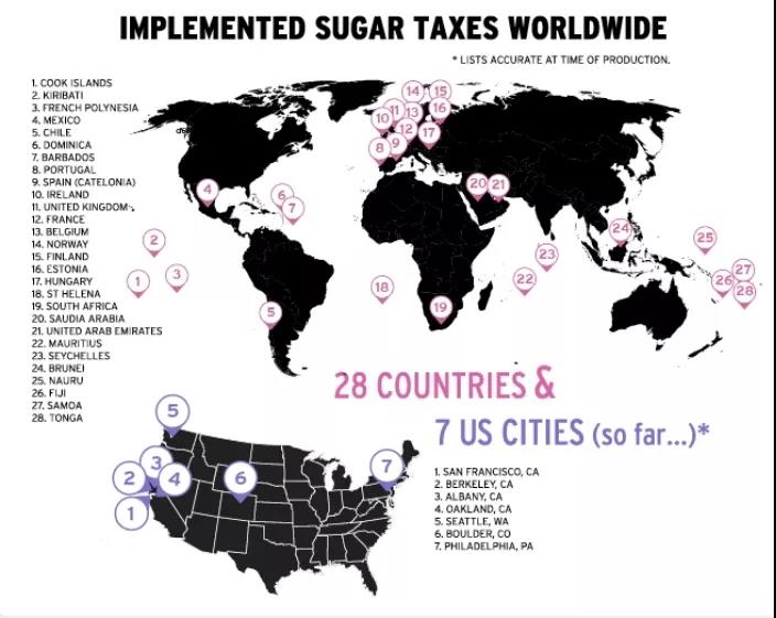 目前,向含糖饮料征税的主体已经增至28个国家和7个美国城市。