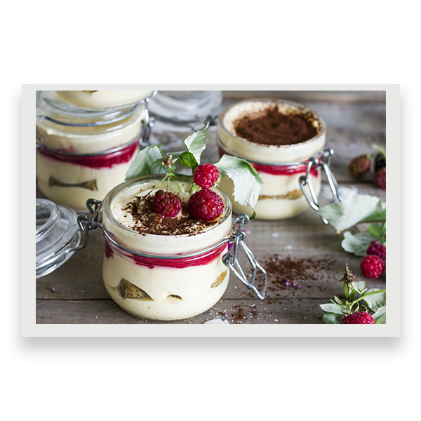 - Cut the biscuits to fit your mould, dip them into the coffee mixture and cover the base of the mould with half the biscuits. For the filling, blend the cream cheese and ricotta together and process with 40ml NZFOS+. Stir the remaining NZFOS+ into the raspberries.